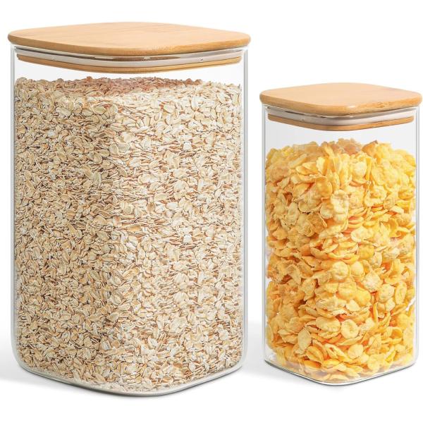 Glass Pantry Storage Containers, 138/50 oz Large Square Flour Sugar Containers Airtight Lids, Gallon Glass Jars Images |